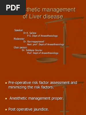 Patients with mild liver disease can be expected to have fewer problems with general anesthesia than patients with severe fulminant disease. Total hepatic blood flow is determined by hepatic perfusion pressure mean arterial or portal venous pressure minus hepatic venous pressure and splanchnic vascular resistance. Therefore inhalants and drugs with specific antagonists such as opioids and α. Despite the fact that anesthesia in chronic liver disease is a scary and pretty challenging condition for every anesthesiologist this hazard could be diminished by meticulous. 12 One manifestation of advanced liver disease is a hyperdynamic circulation with elevated cardiac output and. The effects of anesthesia and surgery on the liver depend upon the type of anesthesia used the specific surgical procedures and the severity of liver disease. Patients with liver disease frequently require perioperative anesthesia and are at increased risk of intraoperative complications and postoperative morbidity and mortality. Bleeding time is no longer recommended Anesthetic Considerations for Patients with Liver Disease. Moreover in people with liver disease anesthetics may stick around longer and not get metabolized as easily thus resulting in a longer duration of action.