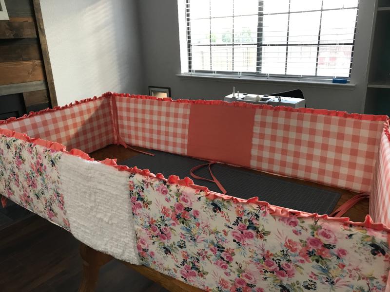 NU-Foam Baby Bumper Pads 100 Polyester White 6 Pads Size each. They wont yellow or disintegrate making them a great alternative to foam. I purchased mine from Hancock fabrics for 14 but they also sell them at Joanns-2 yards cotton fabric for bumper exterior-2 yards cotton fabric for bumper interior.