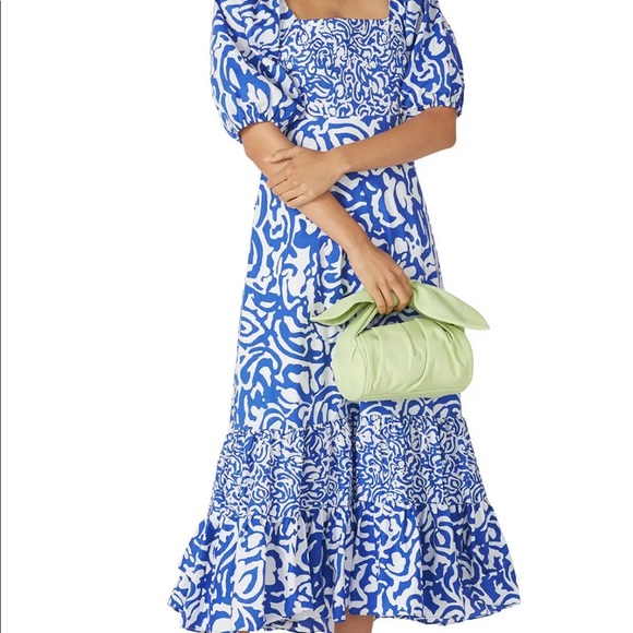 Featuring a fitted bodice with a straight neckline and puff sleeves in a vibrant kelly. Home Unlabelled Tanya Taylor Cynthia Dress. Buy Tanya Taylor Online.